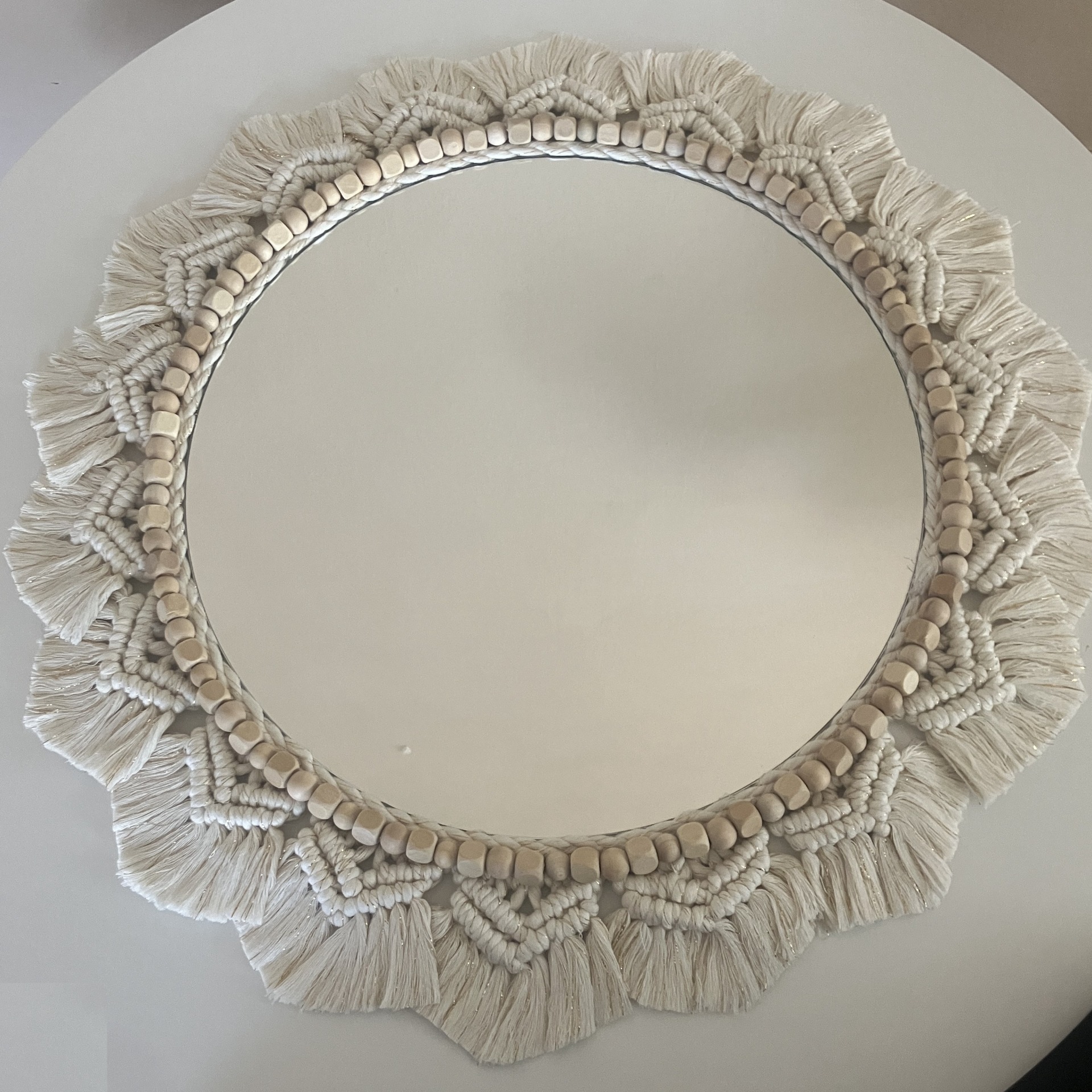 Ručně vázaná macramé zrcadla z přírodní bavlny.