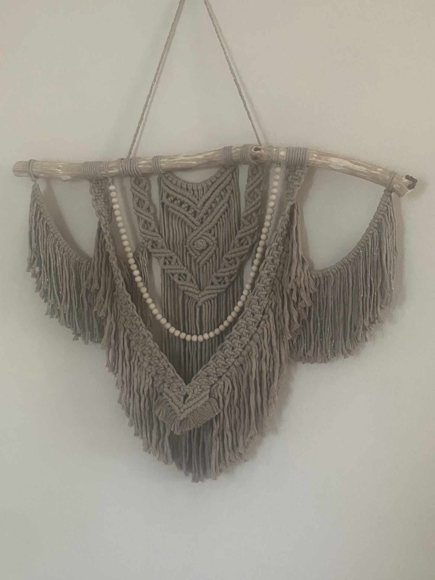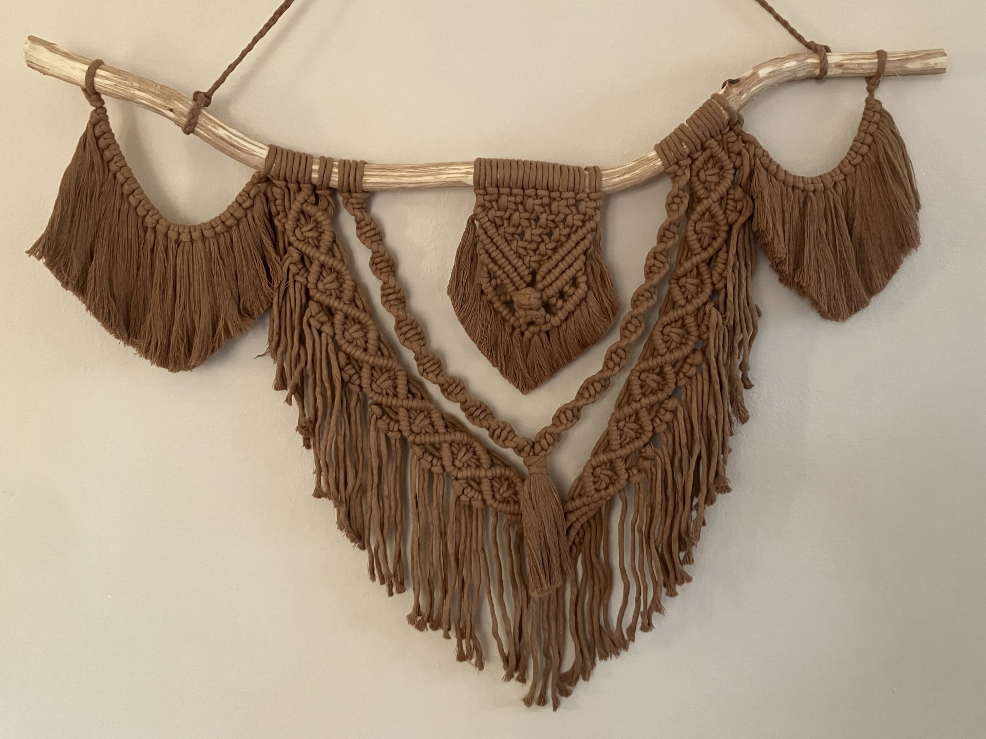 Ručně vázané mástěnné macramé z přírodní bavlny.
