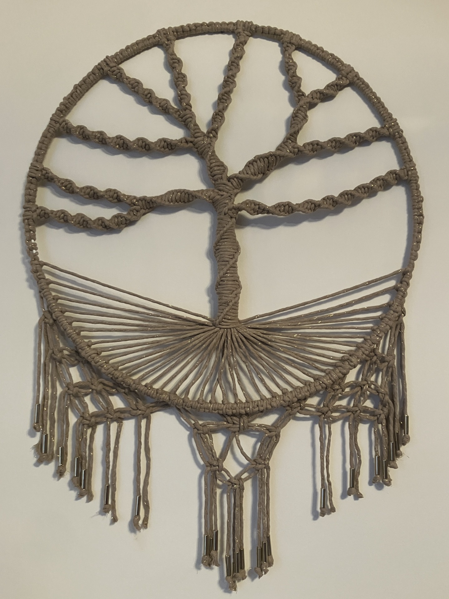 Tento strom života jsem vytvořila pro svou maminku. Chtěla jsem jí do domova přinést kousek klidu, přírody a jemné harmonie. Každý uzel vznikal ručně a pomalu, s myšlenkou na to , aby dekorace nesla dobrou energii a radost.